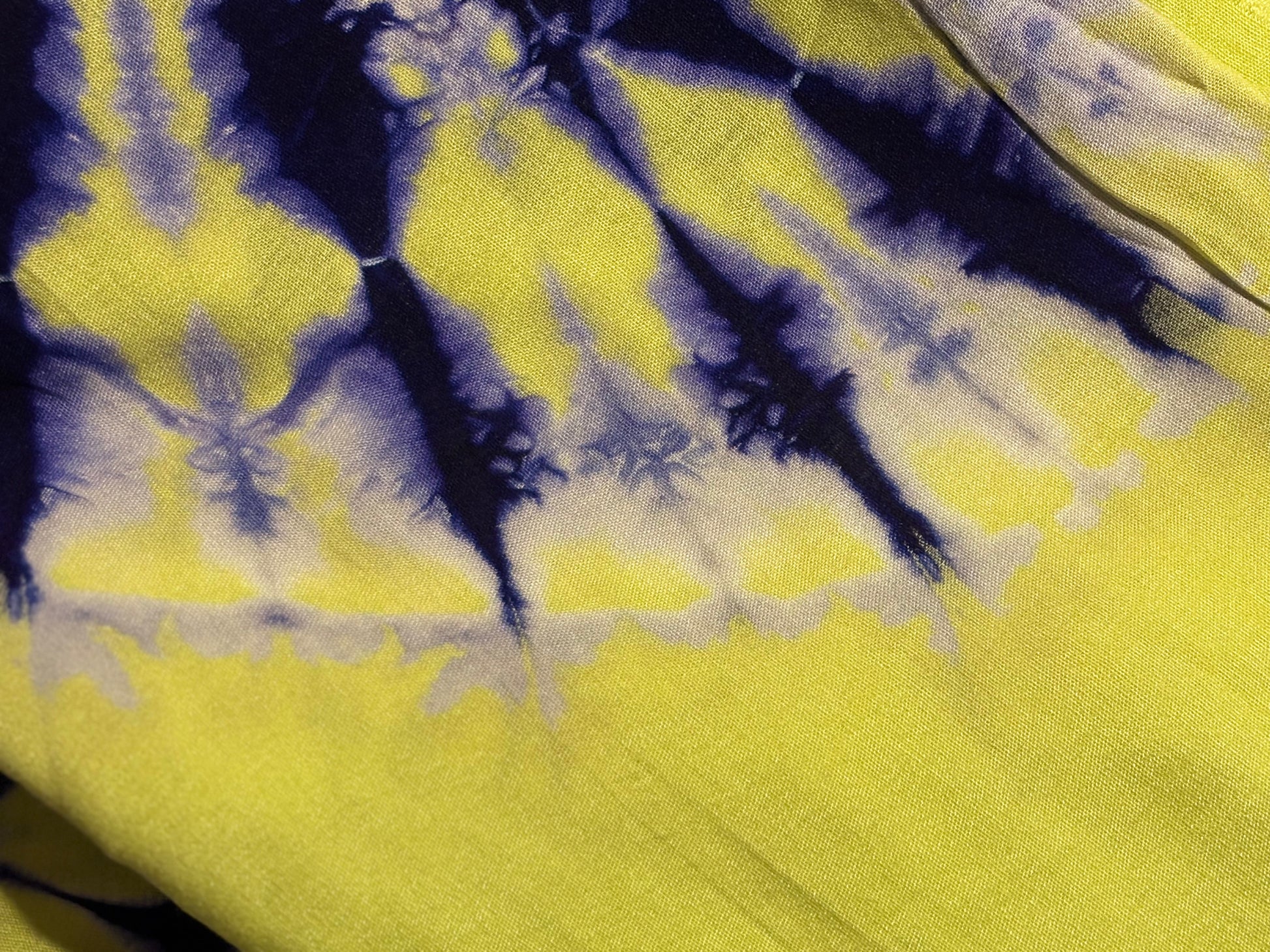 Une melhfa bleu et jaune pour un style frais, léger et estival. Tu seras en vacances, même à domicile avec les couleurs éclatantes du dampé Bahamas.